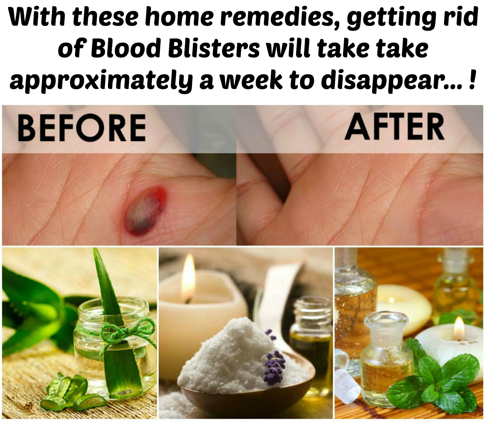 Simply cut a chilled cucumber into thick slices and put a slice over the blister for a few minutes. Wash your hands with soap and warm water. This can be due to friction during shaving. The procedure is actually very quick and effective. They heal because new skin forms below the blister's raised layer. • lift the limb and apply ice on the affected area • wrap the blister with a aloes material to avoid friction • wear open footwear and avoid placing undue pressure on the affected foot Blood blisters should be left alone so they can heal. Witch hazel is one of the effective remedies for how to get rid of blood blisters at home without popping them. An ice wrap on the injured skin is the first aid that can prevent developing a blood blister. A blood blister may show up in 24 hours. Poor shaving methods, such as saving shaving close to the skin can result in blisters. Clean the surface of the blister thoroughly with alcohol, iodine, or an antiseptic wash. This remedy also helps reduce the risk of infection.